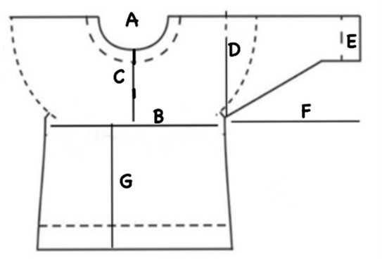 G. Body length measured from armhole down: 34cm/13.5”