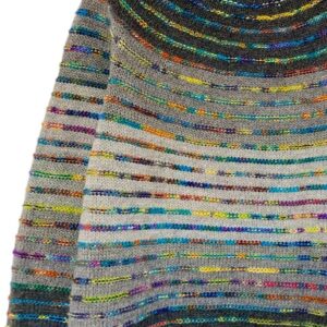 STRIBELADE er en trøje med rundt bærestykke strikket oppefra og ned med (farvestrålende) vrangriller. Længden på kroppen og ærmer kan justeres til eget behov.